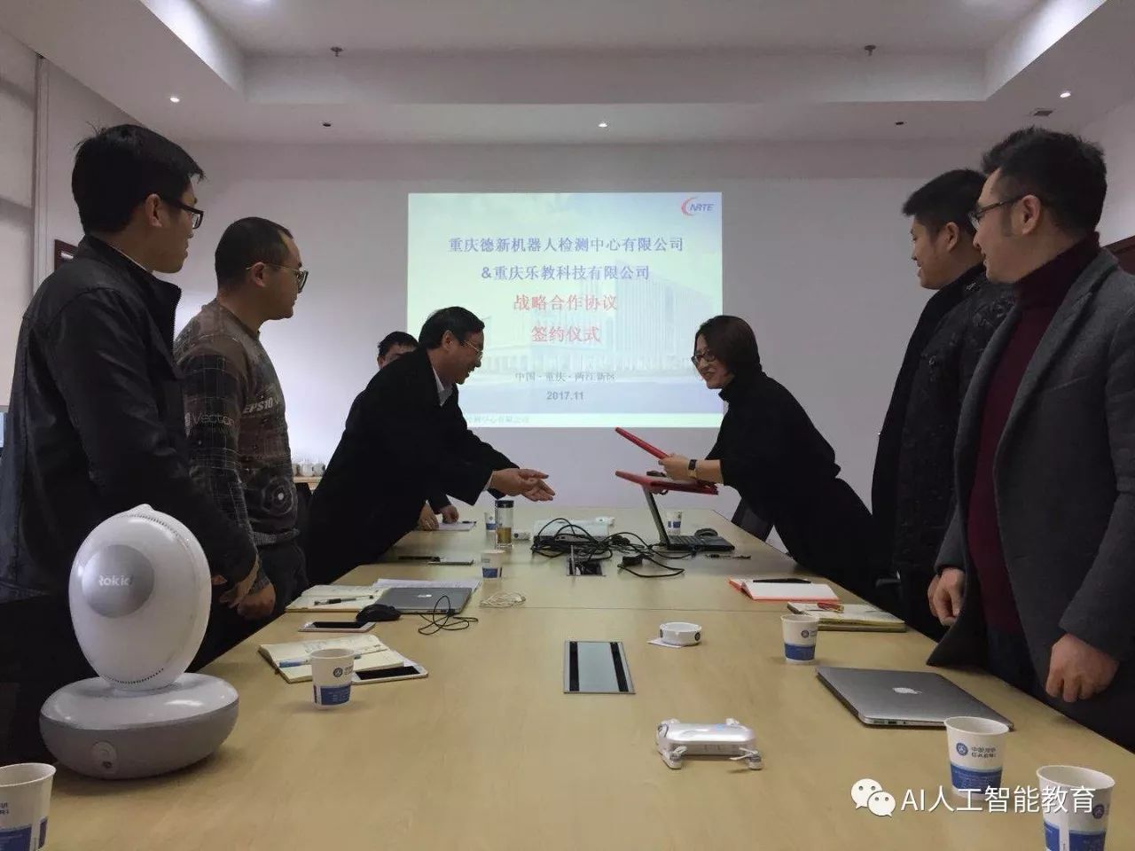 11月30日上午,樂教科技與德新機(jī)器人檢測(cè)中心簽訂了戰(zhàn)略合作協(xié)議。雙方就共同組建服務(wù)機(jī)器人高校培訓(xùn)等一系列深入合作達(dá)成一致。通過合作,積極推動(dòng)人工智能和機(jī)器人產(chǎn)業(yè)生態(tài)的聚集和發(fā)展,在高校共建機(jī)器人檢測(cè)服務(wù)網(wǎng)絡(luò),培養(yǎng)更多機(jī)器人方面的人才。