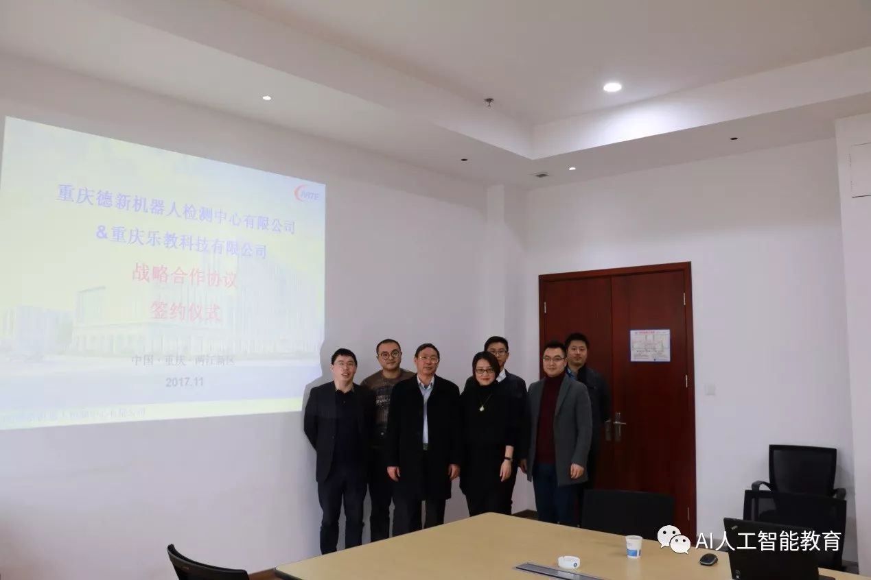 本次簽約儀式在重慶德新機(jī)器人檢測(cè)中心有限公司舉行,出席會(huì)議的有德新公司歐家??偨?jīng)理、零部件檢測(cè)部袁強(qiáng)部長(zhǎng)、環(huán)境檢測(cè)部黃武凱部長(zhǎng)、研發(fā)中心劉飛主任、服務(wù)機(jī)器人檢測(cè)部彭鵬部長(zhǎng)、服務(wù)機(jī)器人檢測(cè)部王雨琴工程師等領(lǐng)導(dǎo),樂教科技CEO張佳、副總經(jīng)理張可、副總經(jīng)理林科等領(lǐng)導(dǎo),出席簽約儀式。